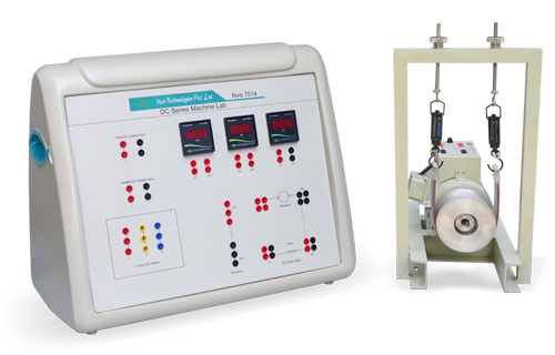 Nvis 7014 DC Series Machine Lab is an important and exclusively designed product for electrical laboratories. DC Machines are an important part of Electrical Engineering Syllabus. This panel plays a vital role in letting the students have a basic knowledge about the operating principle of DC machine. It provides complete learning contents to enhance practical knowledge and explains students the fundamental concepts of DC Series Machine.