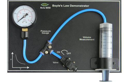Nvis 6050 Boyle`s Law Demonstrator helps students to understand the relation between Pressure and Volume. Gas laws are basic laws that give the relation between the three basic properties of gas like Temperature, Pressure and Volume.