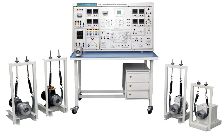 Nvis 7089EV Electrical Vehicle Motors and Drives Workbench offers an excellent platform for teaching of electrical machines used in EV segment over a unique modular designed control unit. It provides flexibility for the students to carry out experiments using a large selection of Industry standard inbuilt components.