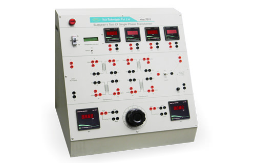 Nvis 7011 Sumpner’s Test of Single Phase Transformer is a very exclusive and important product designed for students of Electrical Engineering to explain the basic concepts of Sumpner’s test. With this trainer, students can learn about the significance of conduction of the heat run test with two single phase transformers and correspondingly can deter mine the efficiency and voltage regulation. Additionally one can also learn the phenomenon of polarity.