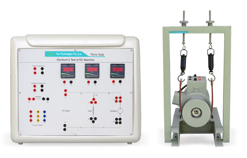 Nvis 7034 Swinburn’s Test of DC Machine is an important training system for Electrical Laboratories. It can be aptly employed for understanding the fundamental concepts and functioning of DC Motor. Swinburn’s Test is the method through which losses are measured separately and efficiency at any desired load can be predetermined.