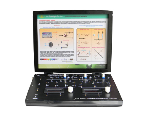 Nvis 6509C Understanding Network Theorems is a compact, ready to use experiment board and has been designed specifically for the study and verification of network theorems in DC circuits. In network analysis, the fundamental rules are ohm’s law and Kirchhoff’s laws. These laws may be applied to analyze any circuit configuration but for solving complex circuits, use of “Network theorems” is much better because it simplifies the analysis of complicated circuits.